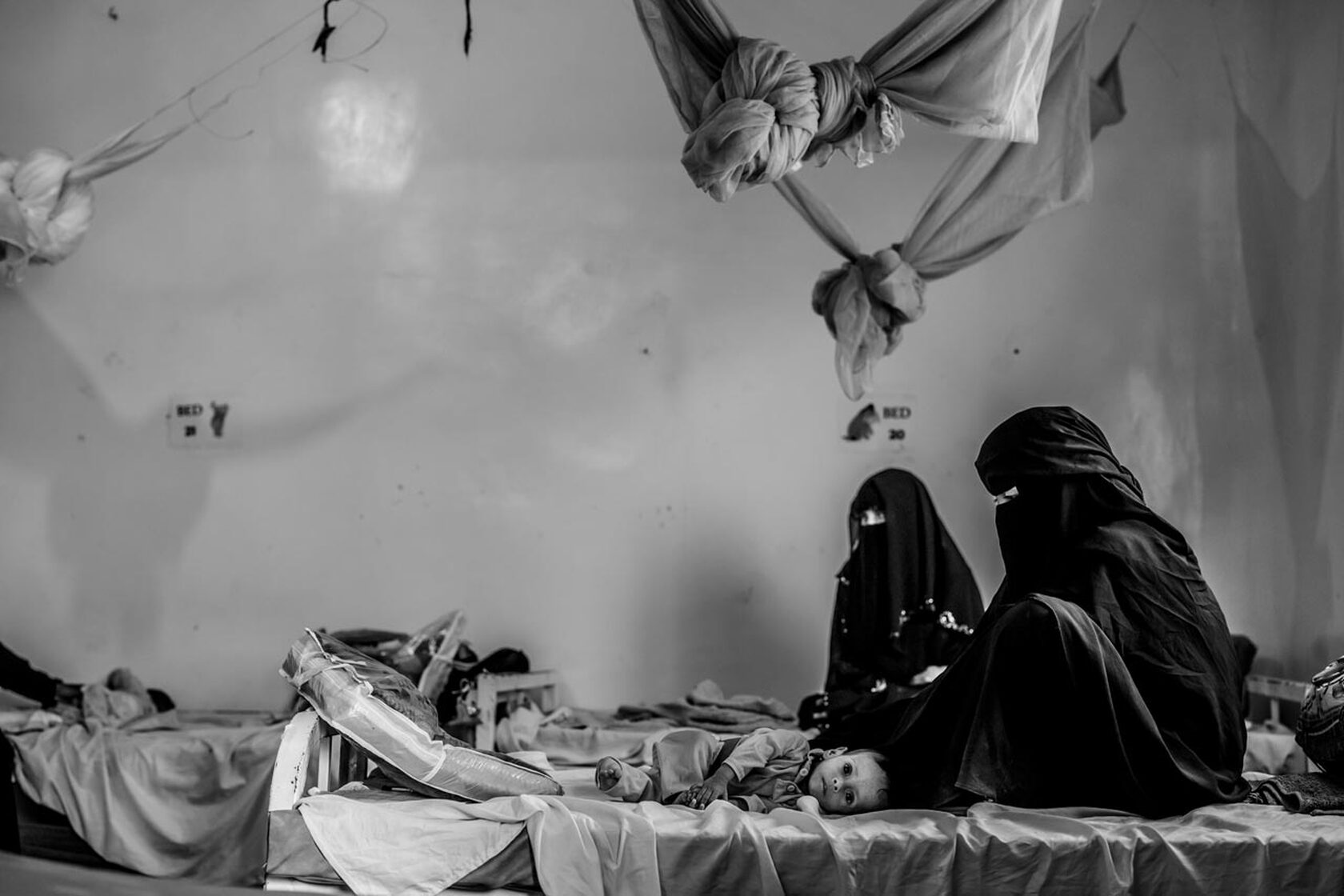 »Die Kliniken im Norden waren völlig überfüllt und in jeder sah ich Kinder, die bis auf Haut und Knochen abgemagert waren. Als Fotograf im Jemen, vor allem als Mann, ist es schwierig, Frauen zu fotografieren. In den Kliniken aber haben mir die Frauen immer die Erlaubnis gegeben. Es war wie ein stilles Einverständnis. Sie wollten, dass über ihre Situation berichtet wird und erlaubten Zugang in eine Intimsphäre, die sonst verschlossen bleibt«, berichtet Daniel Etter über seine Erfahrungen im November 2018 im Jemen.