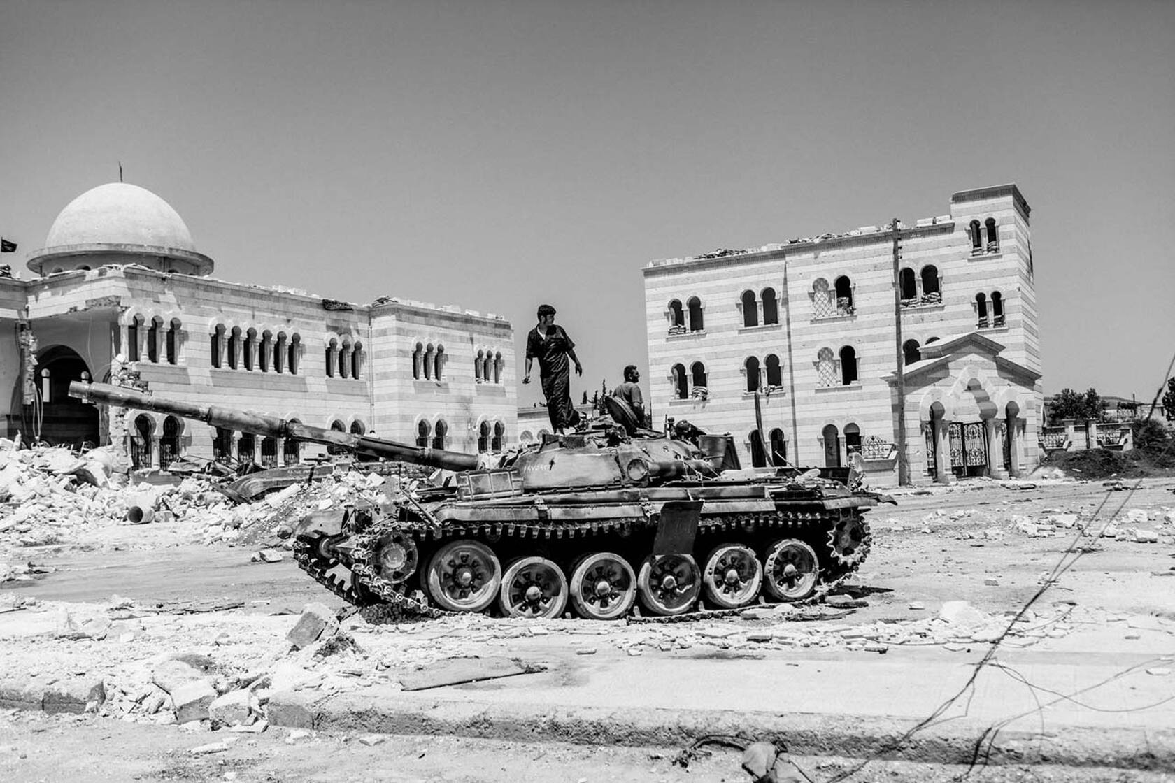 »Eine zerstörte Moschee und ein Panzer in der Stadt Azaz. Es gibt wohl kaum eine Szenerie aus dem syrischen Bürgerkrieg, die so oft fotografiert und so oft gedruckt wurde. Jeder Fotograf, der im Sommer 2012 vor Ort war, hat ein Bild davon. Es ist einfach, eindeutig und nicht zu grafisch.«