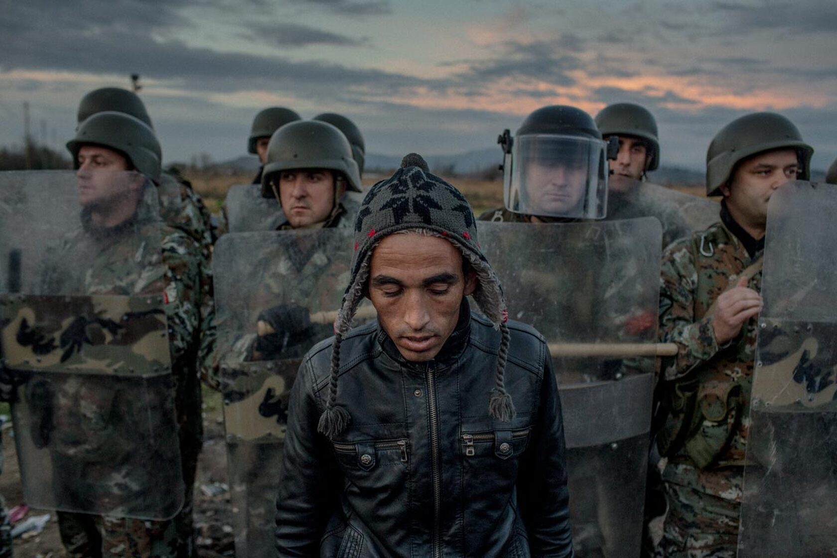 »Ein Mann aus Marokko steht vor Mazedonischen Grenzschützern. Die Idee eines freien und offenen Europas wurde im Herbst 2015 in Frage gestellt. Überall gingen damals Zäune hoch. Selten kann man politische Entscheidungen so direkt in Bilder übersetzen.«