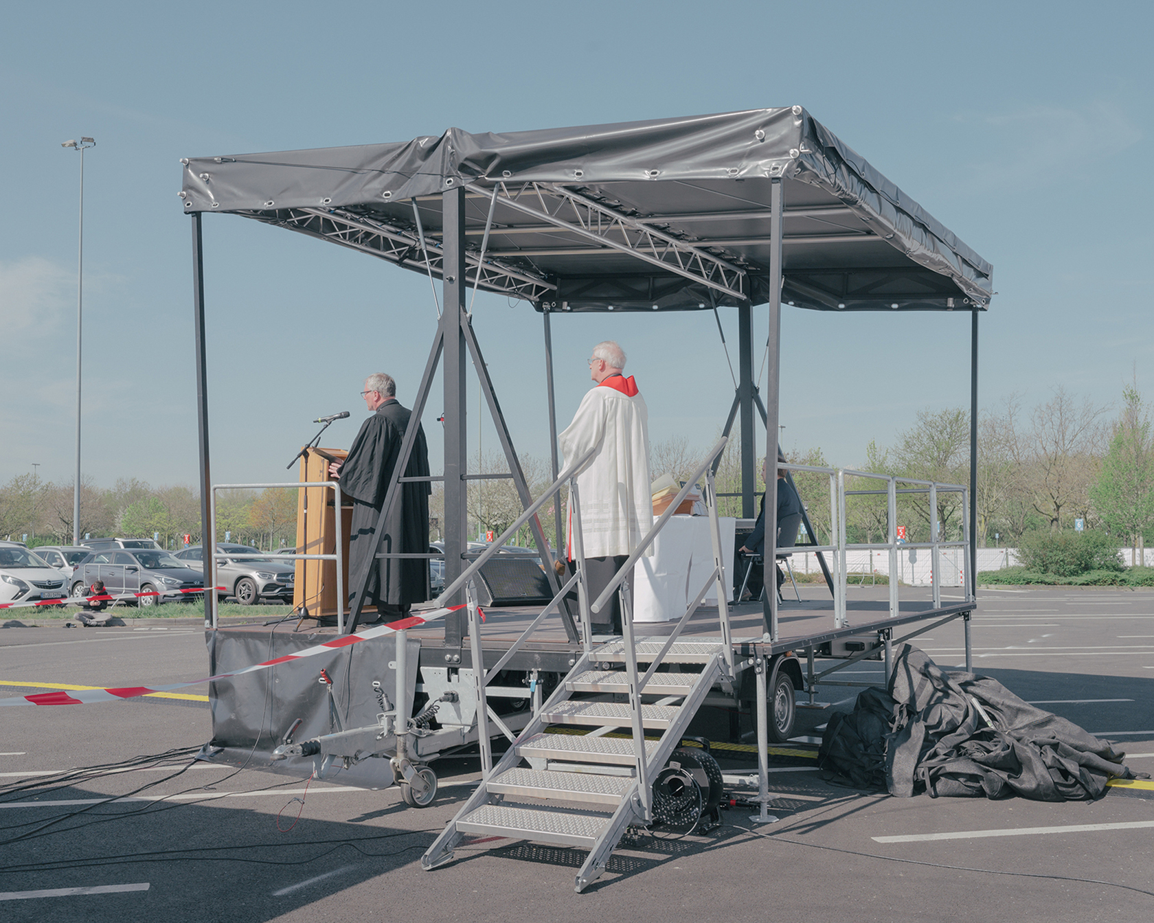 Immer wenn ich daran denke, krank zu werden, fühle ich mich schwach, und mein Herz beginnt schnell zu schlagen. Das war schon immer so. Als sich COVID-19 Anfang 2020 rasant um den Globus ausbreitete, wachte ich in einer Welt auf, die sich genauso zerbrechlich anfühlte. Die Länder schlossen ihre Grenzen. Die Menschen wurden aufgefordert, zu Hause Schutz zu suchen. Das öffentliche Leben kam zum Erliegen, und innerhalb weniger Tage war ein normales Leben nicht mehr denkbar. Meine eigene Angst hatte sich in die Angst einer ganzen Gesellschaft verwandelt. Als Reaktion darauf begann ich einen Roadtrip, der mich unter strengen Sicherheitsvorkehrungen 25.000 Kilometer quer durch Deutschland führte. Während dieser ungewöhnlichen Reise habe ich an den Fronten und in den Hinterhöfen der sich entwickelnden Krise fotografiert, um ein persönliches und umfassendes Dokument des Lebens in dieser historischen Zeit zu schaffen. „About the days ahead“ reflektiert eine sich verändernde Gesellschaft, die zwischen kollektiver Isolation, Angst, Verzweiflung und dem unbedingten Wunsch nach improvisierter Normalität in nie dagewesenen Zeiten oszilliert.