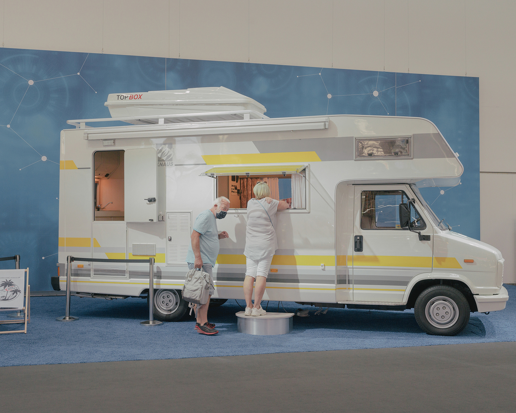 About the Days ahead. Eine Szene bei der Messe Caravan Salon. Durch die enorme Nachfrage nach Urlaubsmöglichkeiten im eigenen Land boomt die Branche. Die Wohnmobil-Messe ist eine der ersten, die wieder stattfinden darf. 11. September 2020, Düsseldorf, Deutschland. © Ingmar Björn Nolting