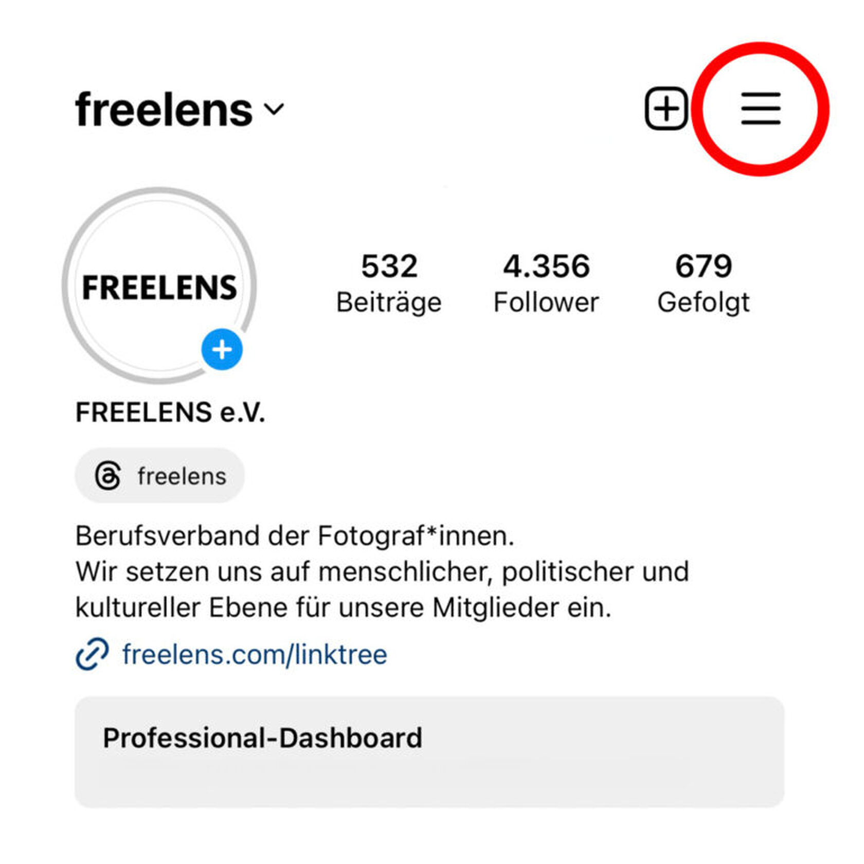 Schritt 1: Instagram-Profil öffnen und auf die drei horizontalen Striche klicken